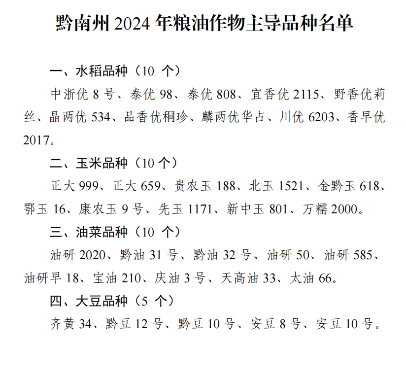 35个!黔南州2024 年粮油作物主导品种名单出炉