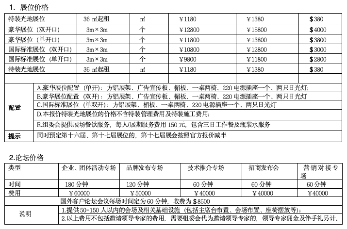 详询大会招商经理,索取完整报价列表